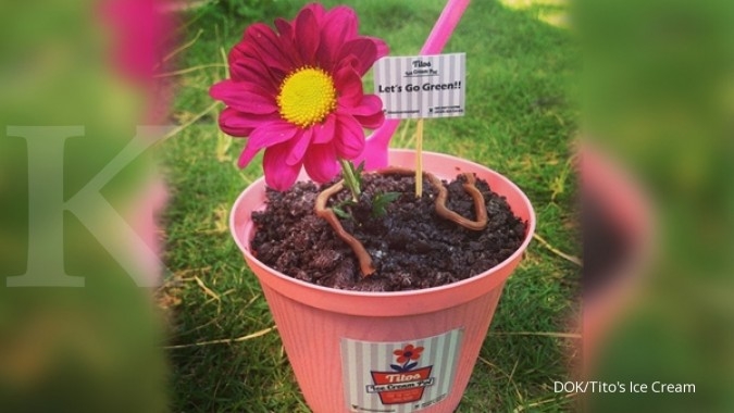 Menyantap es krim cone sudah terlalu jamak. Belakangan, sebagian pengusaha es krim berinovasi menawarkan menu es krim lewat wadah pot berukuran mini. Dengan hiasan oreo, coco crunch, dan lainnya penampakan es krim ini serupa tanaman di dalam pot. Lantaran ramai peminat, omzet pengusaha es krim inovasi ini bisa mencapai puluhan juta per bulan.
